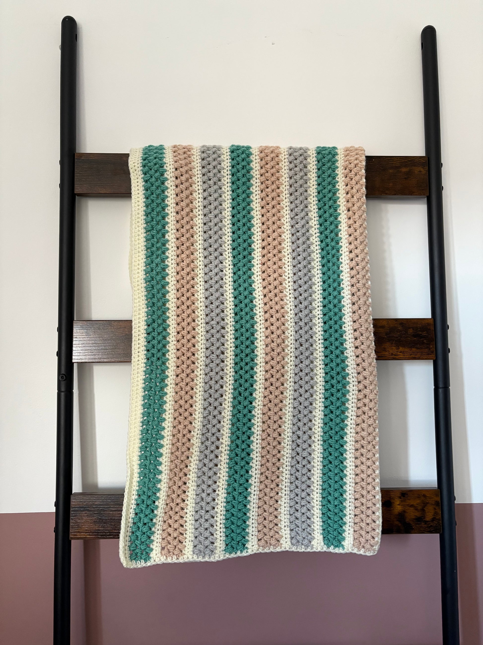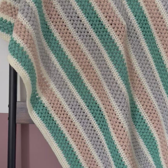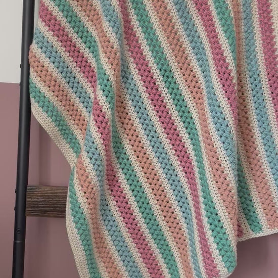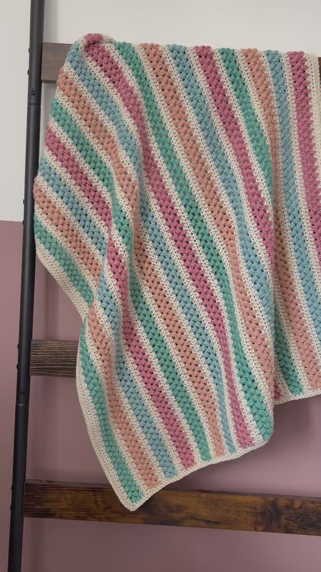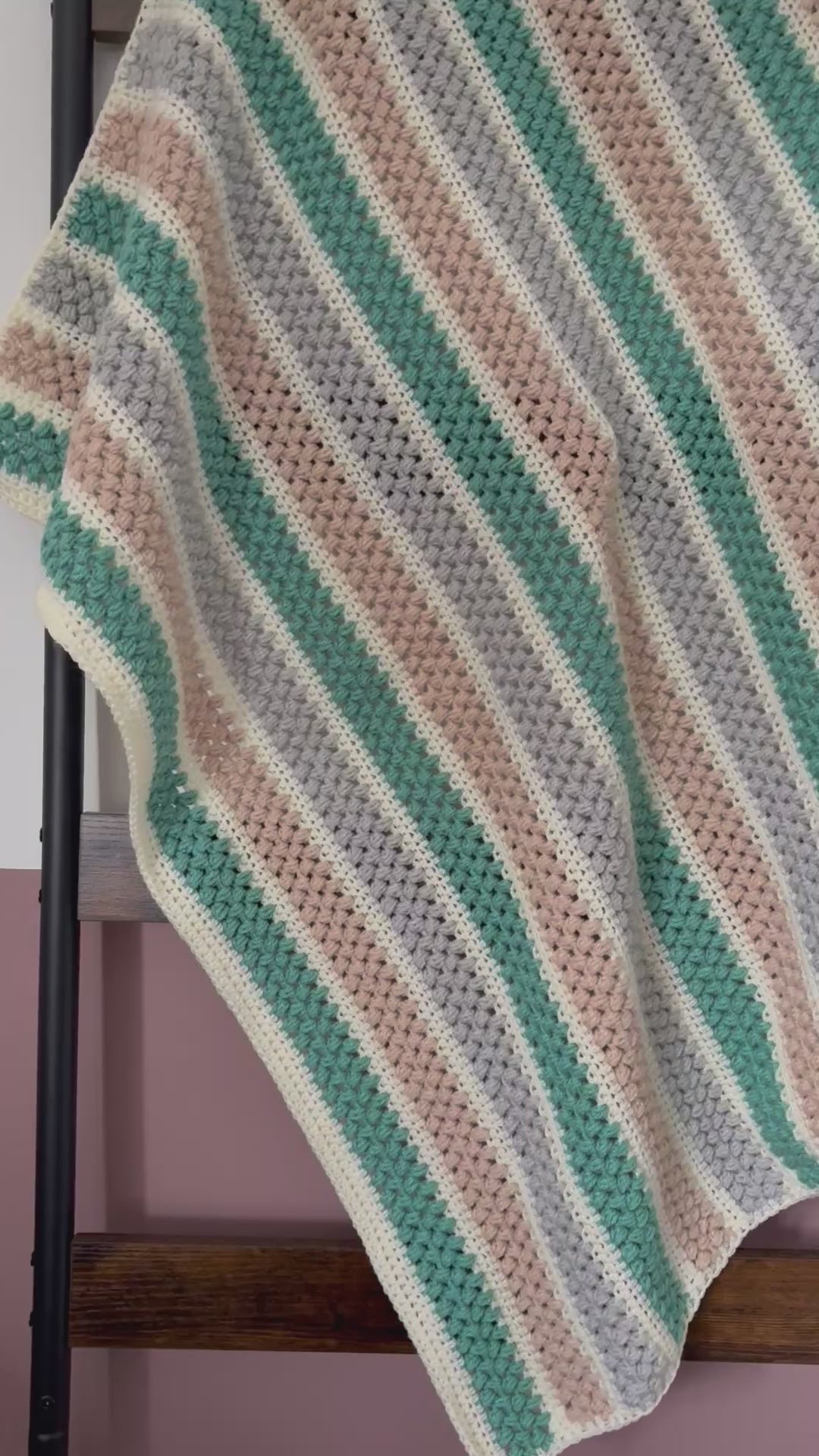 The Cloud Nine blanket is an advanced beginner friendly blanket pattern with beautiful texture and colour changes. This is a great blanket for a new baby or a throw.